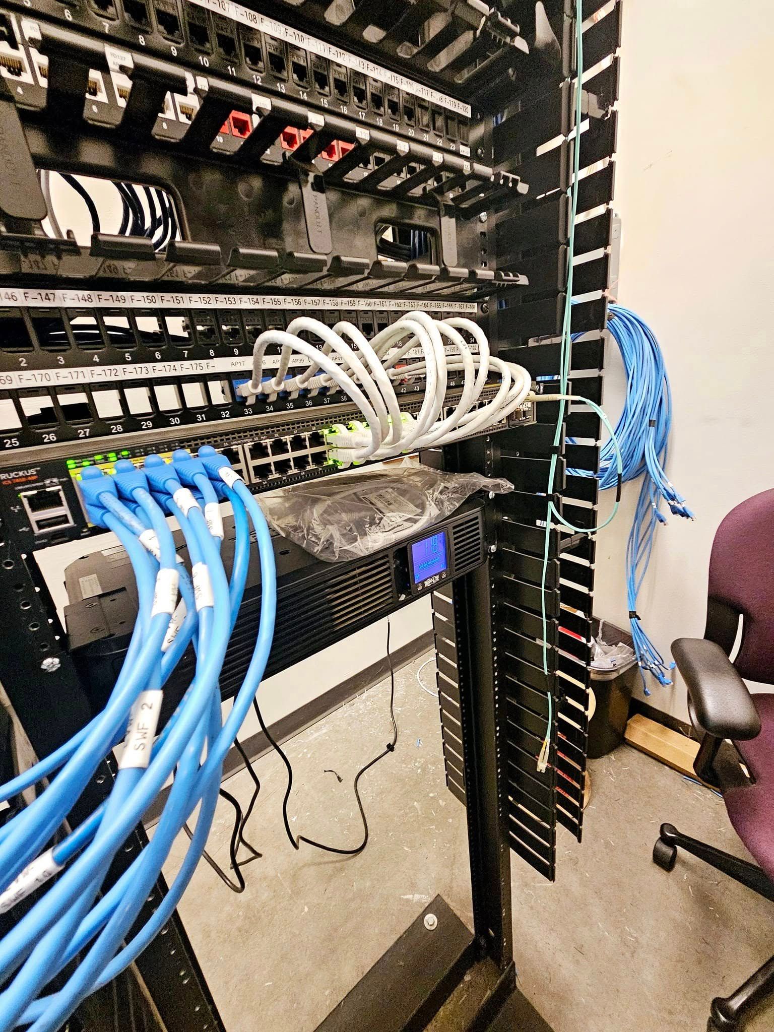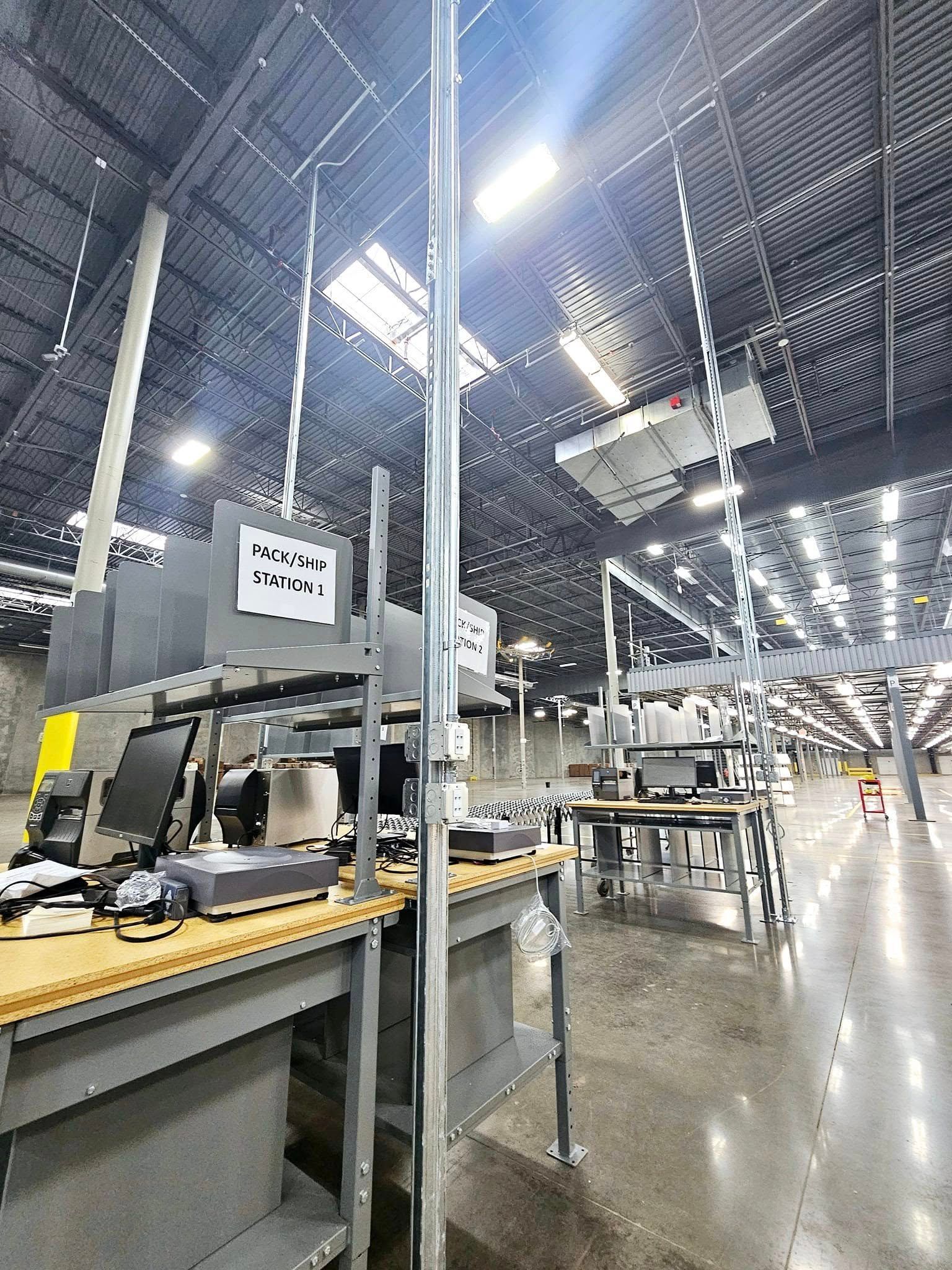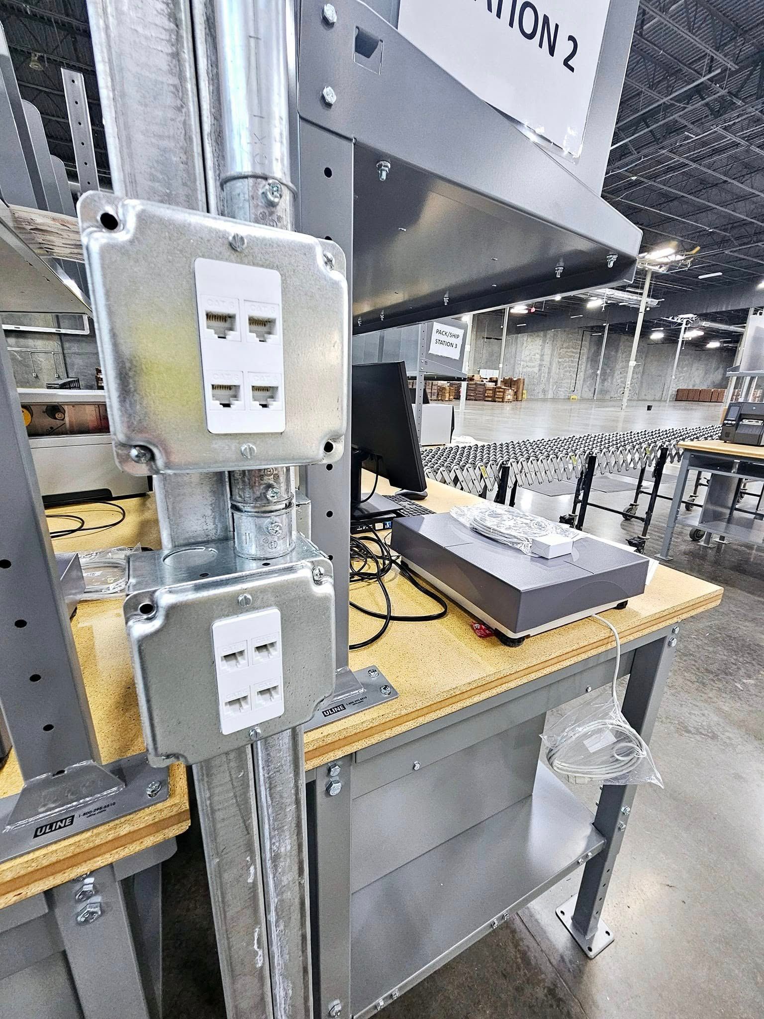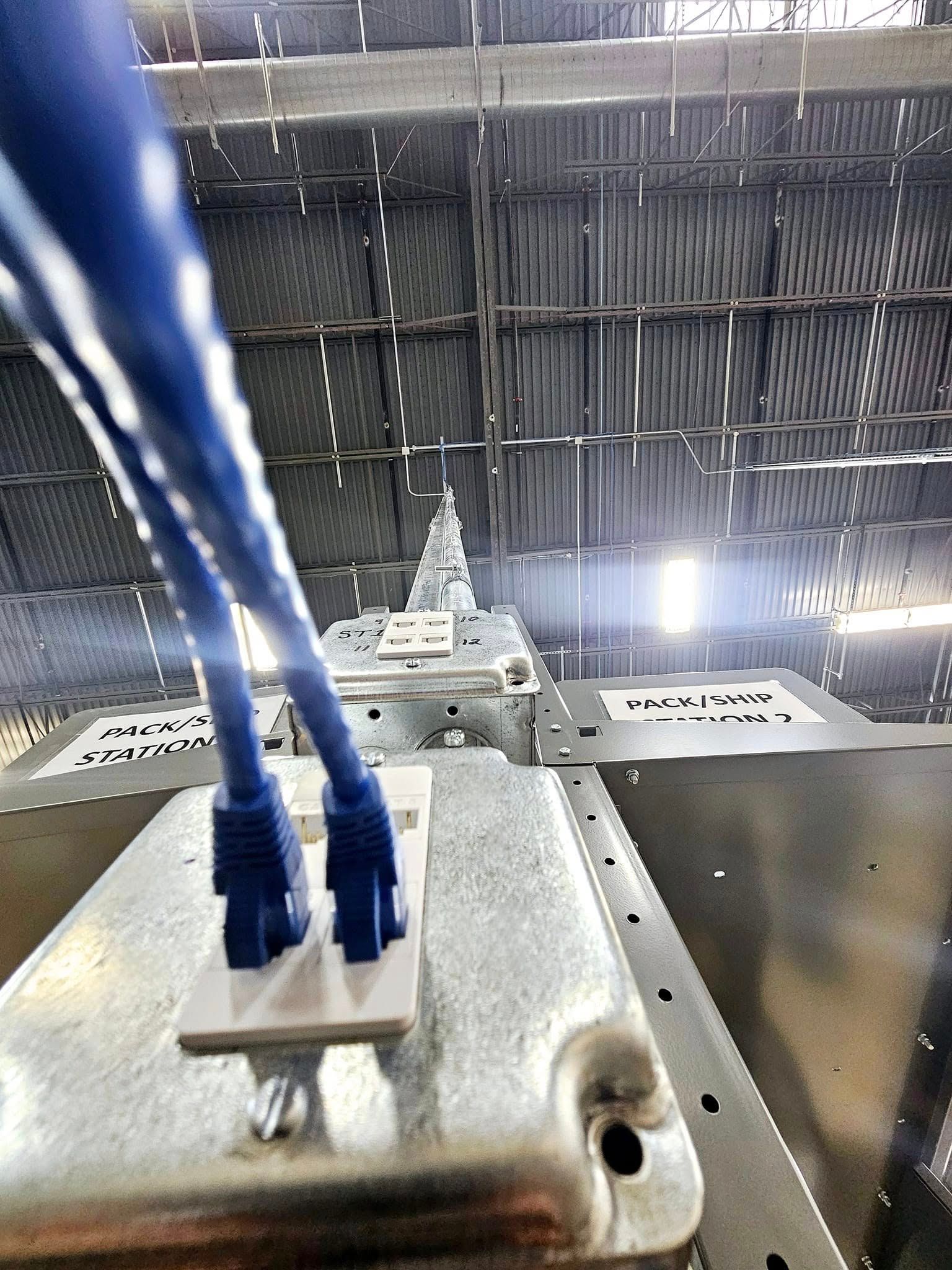 This commercial project involved a large-scale fulfillment center buildout, including the installation of over 7,000 feet of Cat6 data cabling to support multiple packing stations throughout the facility. Our team coordinated closely with the facility’s IT department to ensure proper termination, testing, and commissioning of all data ports serving the packing operations.